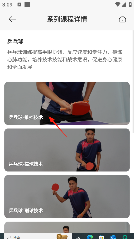 5、点击想学习的乒乓球技术课程。