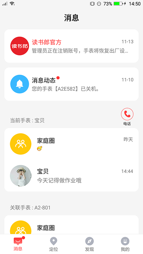 除此之外,读书郎智能手表app还可以接收到手表佩戴者发送的文字聊天以及拍摄的照片信息,如遇到紧急情况也能一键报警,孩子可通过手表端发送语音信息,让家长们直接通过软件就可以随时随地亲子陪伴。