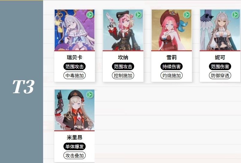 T3:玛侬 + 直美 + 妮妮 + 艾鲁莎