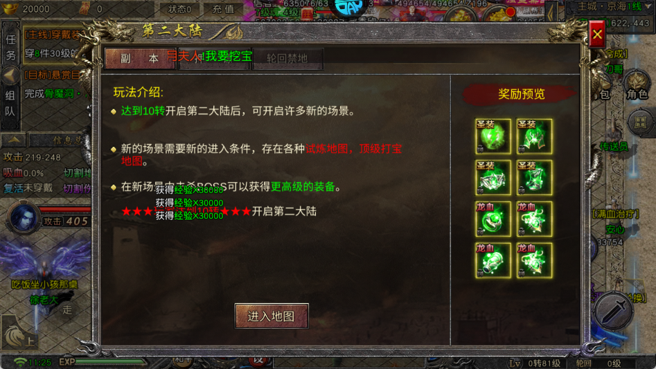 2、尽量挂低转地图攒转生材料,存材料效率比同转地图要高!