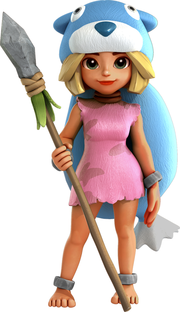 她头上戴着幸运鸟给她的羽毛,每天跟她的哥哥波比一起玩,但每次都会被爱扮鬼脸的顽童波比捉弄。