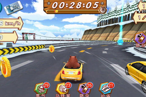 熊出没之雪岭熊风这款游戏大家听名字就再也熟悉不过的游戏了,这款游戏主要是扮演熊大熊二来完成一次惊险而又刺激的飙车竞速模式。玩家可以根据自己的兴趣选择自己想要的车辆来完成一场惊险而又刺激的竞速比赛。