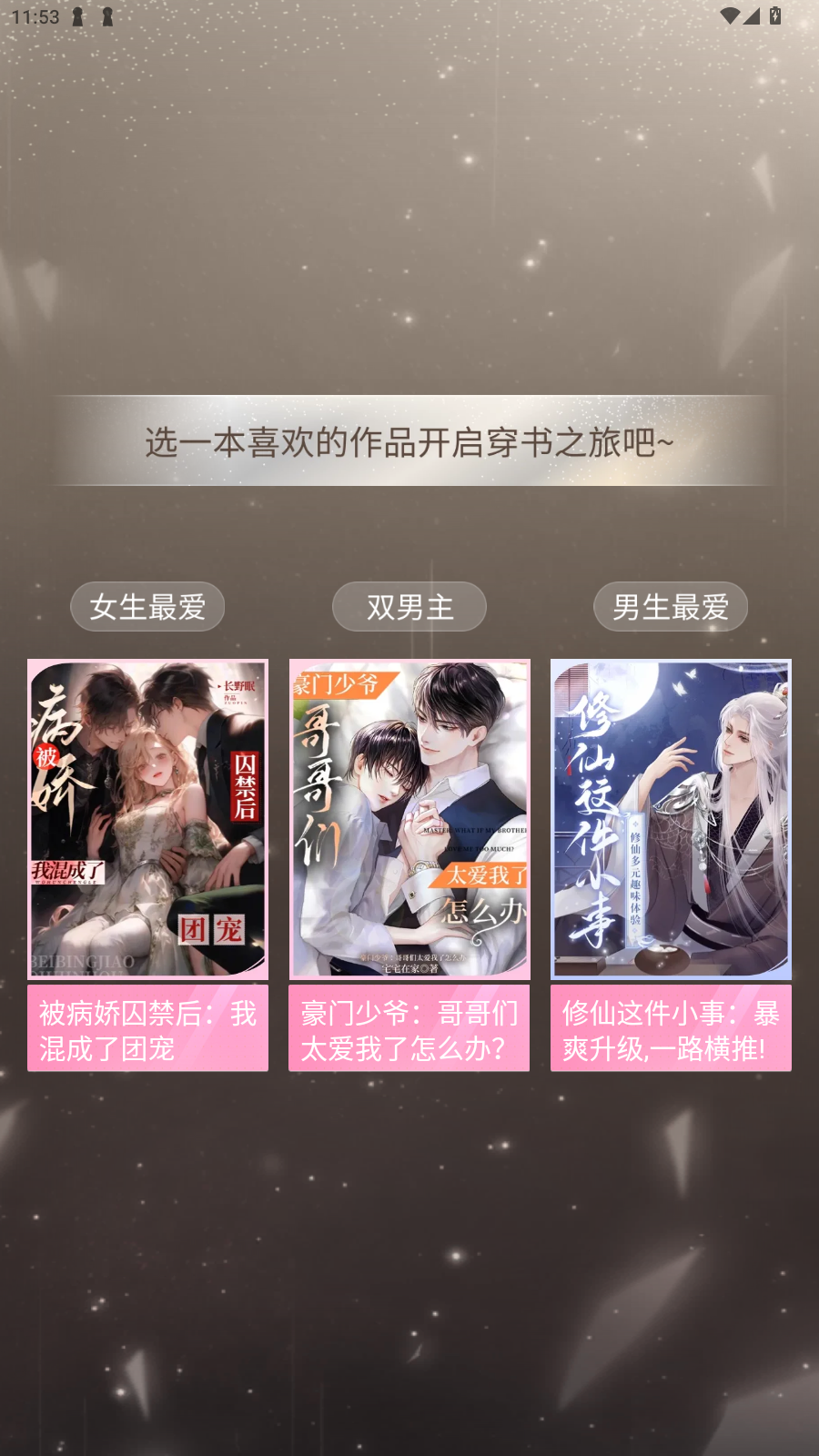 古代童话/都市爱情/奇幻冒险/BL甜宠……特收录“奇葩说”“末世求生”题材!从霸道总裁到搞笑男女主,从王者偶像到追星少女,各种角色任你选择!
