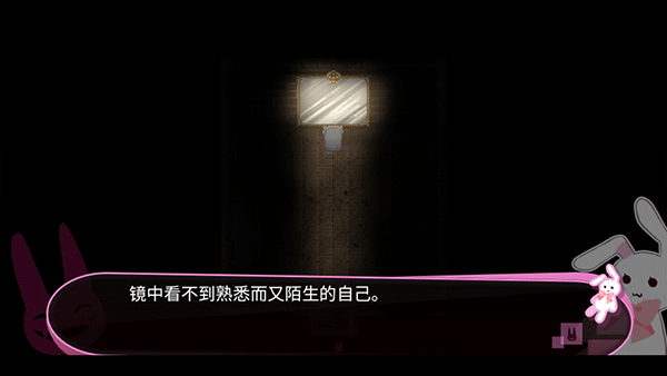 6、根据剧情喵露朵露薇会醒来,按照图中所示先到桌子面前发现玩偶不见,之后查看右边的镜子。最后从门这里出去