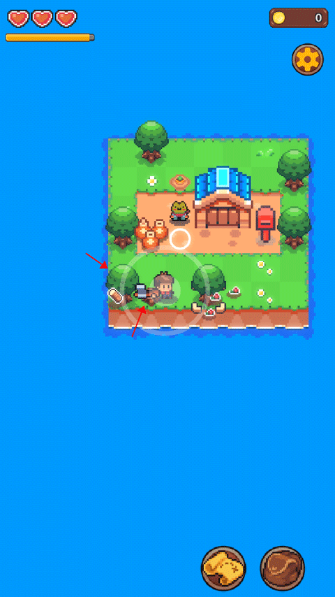 4、你挖完之后走到青蛙先生旁边时,会触发对话机制,通过青蛙先生的提示来继续开发游戏的新玩法。