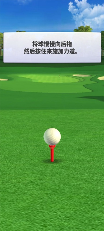 1、将高尔夫球向后拖动并按住,设定击球力度准备发球。