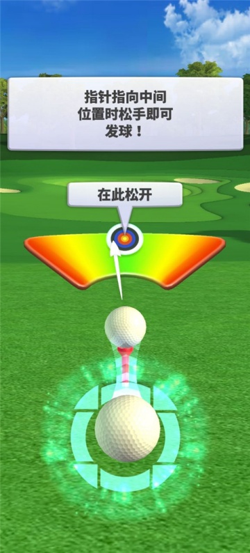 2、当指针移动到中间位置时松开完成第一次击球动作。