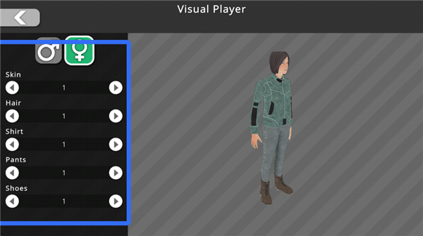 2、进行人物皮肤、发型、衣服设定。