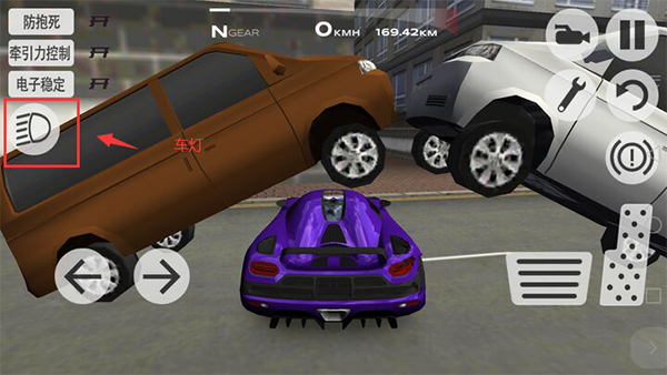 3、车灯按钮在屏幕左边,玩家在游戏过程中可以打开车灯。