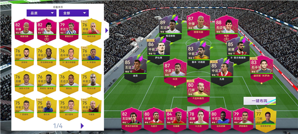 除此之外这个阵型在打法上属于防守反击打法,只要我们能保证自己的两边后卫在速度上不低于85一般来说是可以做到无懈可击的,根据以上在球员的选择上有以下思路提供参考: