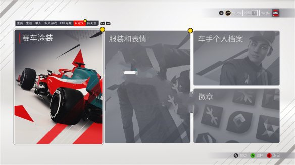 更改赛车涂装、服装表情以及车手个人档案。
