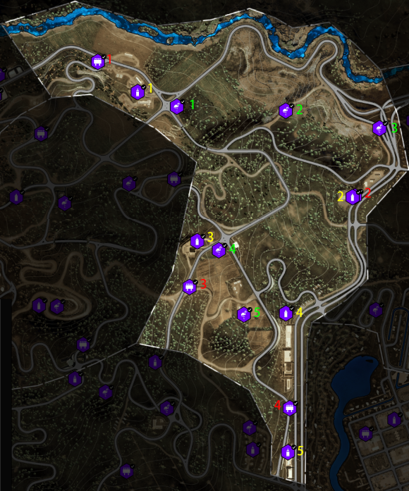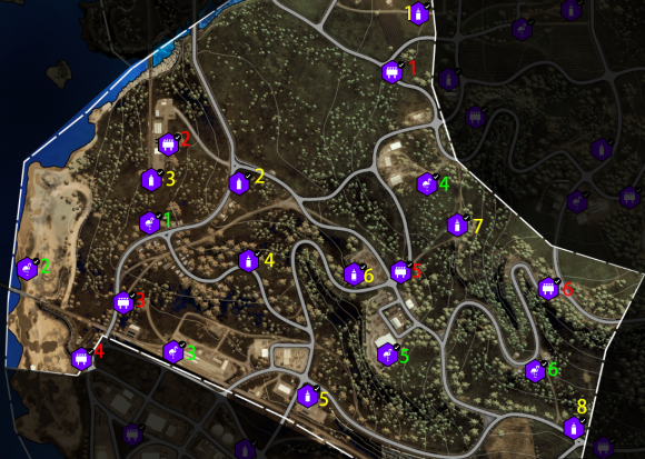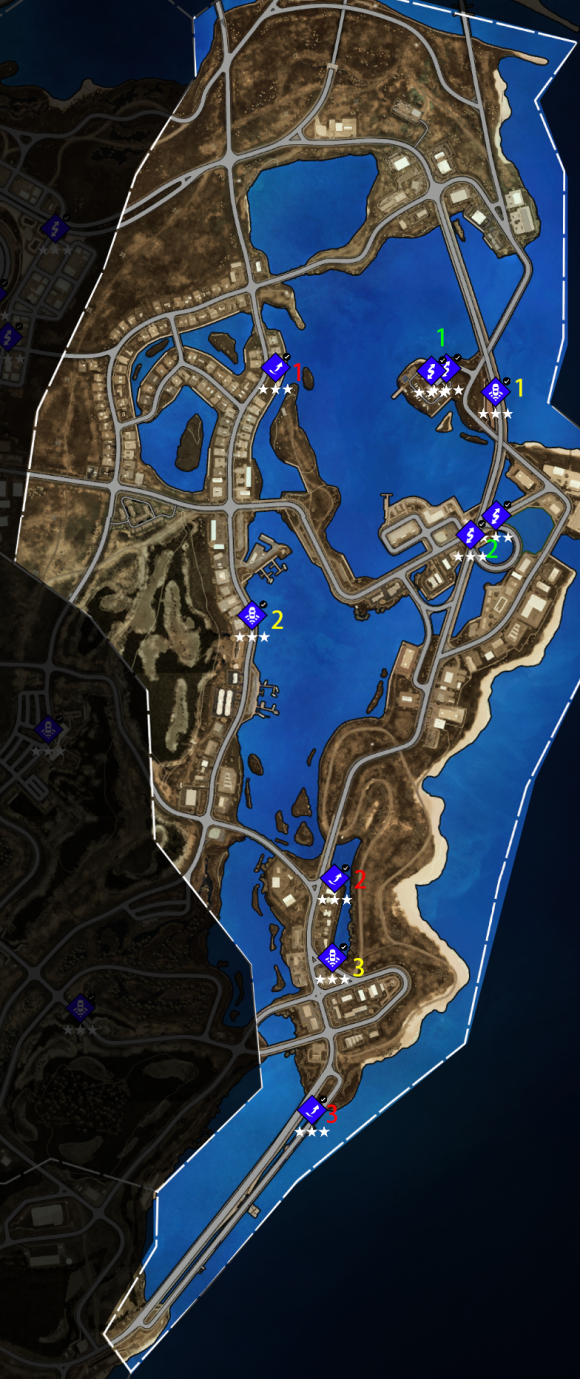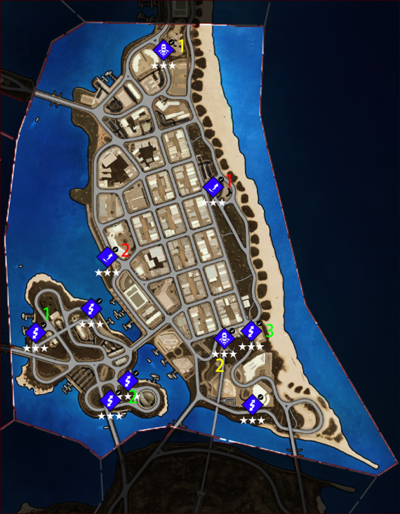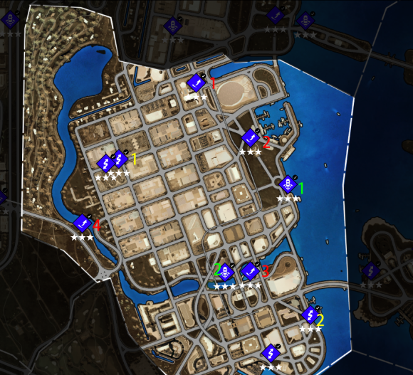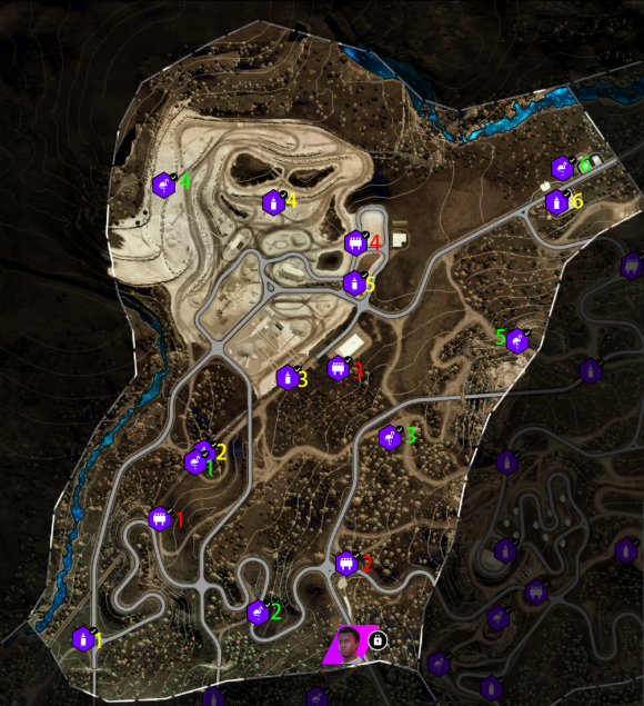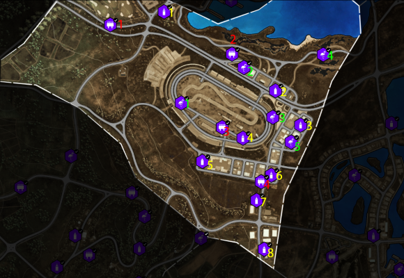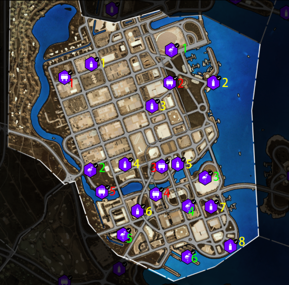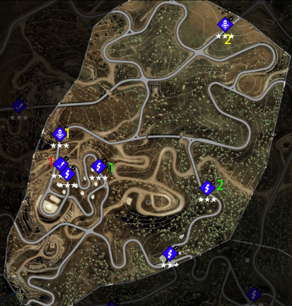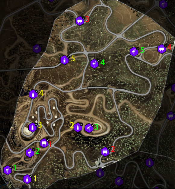 3、每一类活动及收藏品都已用用颜色序号标记(红色飞跃、黄色测速,绿色漂移;红色广告牌、黄色街头艺术、绿色火烈鸟);