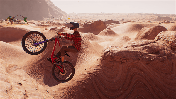 这款游戏会警告你这片令人惊叹的砂岩地貌是如此脆弱,每天只有 20 人可以入场参观。你也可以在这片地貌周围乘着山地机车进行游览,在脆弱古老的岩石之上做出各种特技动作与漂移。这被称作叙事失调,是一件很滑稽的事情。