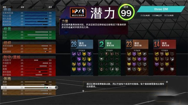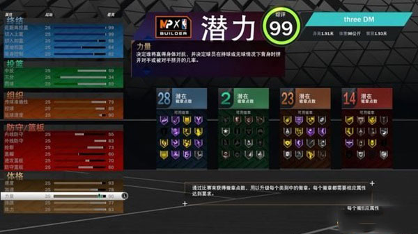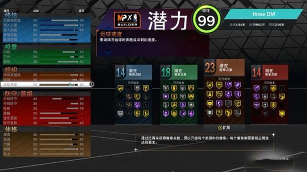 5、每项能力都会与特定的其它能力关联,每当提升某项能力至较高的水平,都会带动其它几项特定的能力一同提高。6、举例:想要点出93点的切入扣篮时,需要以73点的切入上篮和48点的近距离投篮作为基础。