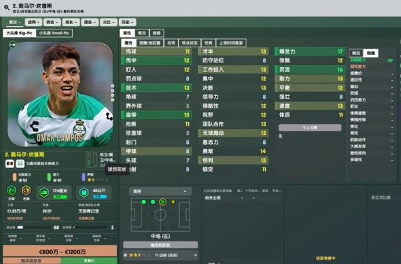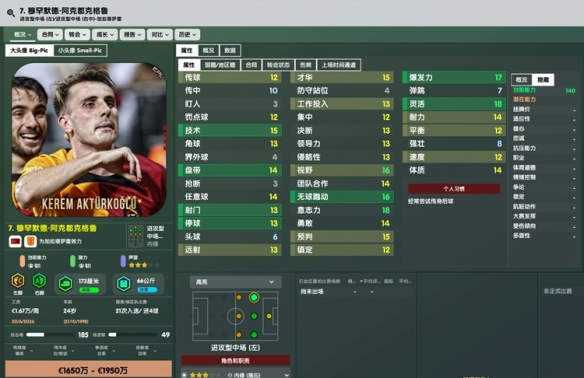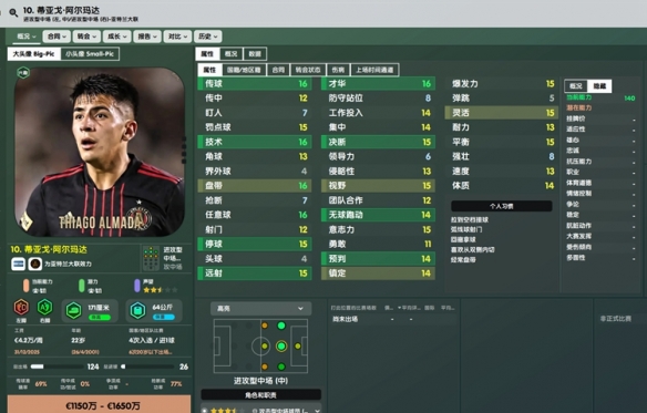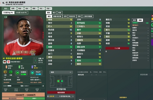 开档19岁的年轻中场,底子相当不错,各项属性几乎没有短板。虽然无法判断潜力高低,但就这底子有点像前俩代的阿尔玛达。