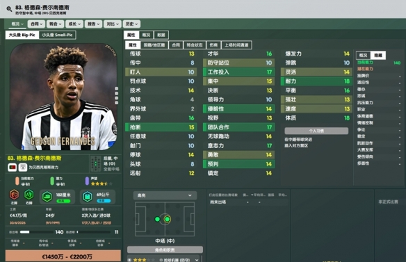 性价比非常高的一名强力中场,属于顶级的过渡性即战力,五大联赛首发级别的能力。