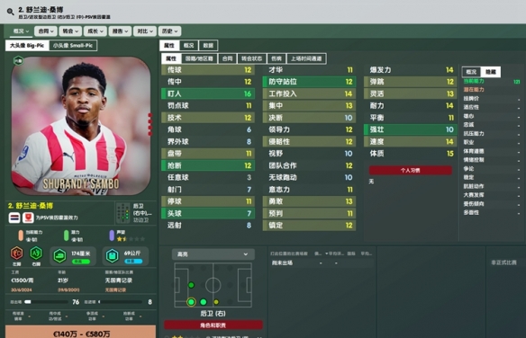 底子很不错的一名年轻后腰,本代身体属性迎来较大加强,稍作培养就是后防大将。
