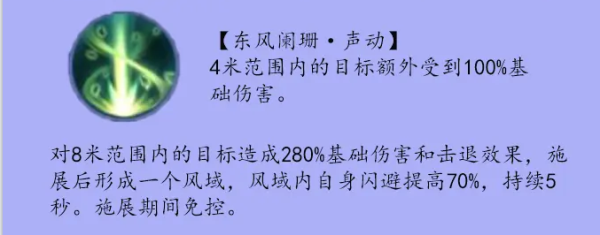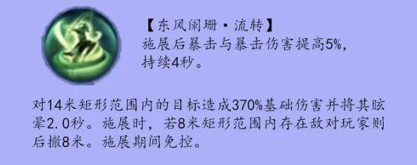 点评:加强自身的输出和暴击暴击率,还能超范围造成眩晕敌人,其次在使用的时候还能后撤8米,大约3-4个身位,施展期间免控。在PVP时候可作为起手技能,也能做为位移技能,比较实用。