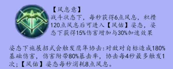 2、疾羽:每触发一次鹰集协击,可降低所有招式调息时间0.8秒。