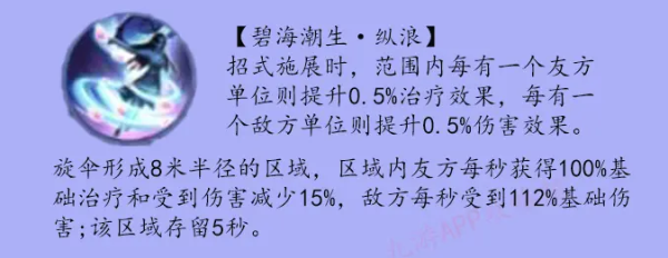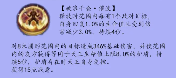 点评:这个技能很流弊,可为范围友军解控还能减伤,还能大量回血,其次释放的时候还能免控,大大的缓解了队伍的生存环境,和自身的功能性。