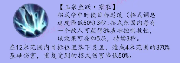 ①冰华:施展【扶摇九天】时获得一个等同于自身15.0%生命值的护盾,护盾存续10秒,护盾存在期间免控。