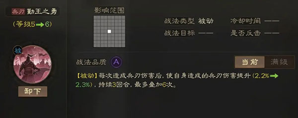 颜良是队伍中的第二输出,自带战法【勇冠三军】是启动战法,可以使得自身获得[先攻],并且下一次主动单体攻击后会对目标造成额外伤害以及[震慑]效果。【勤王之勇】是提供给颜良更强的输出成长。