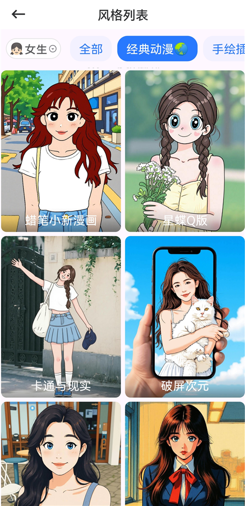 2、多风格漫画转换,覆盖素描、日漫风、古风、黏土风等漫画风格。