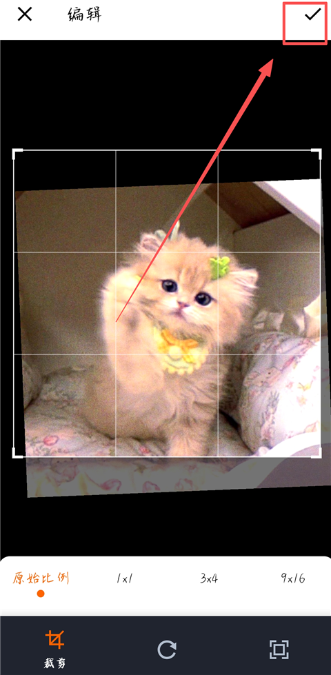 4、对照片进行适当裁剪,然后点击右上角√图标。