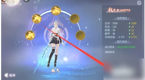 3、点击下方“突破”即可提升角色战斗力;突破后:生命+防御+破甲+杀怪经验均会有所提升。