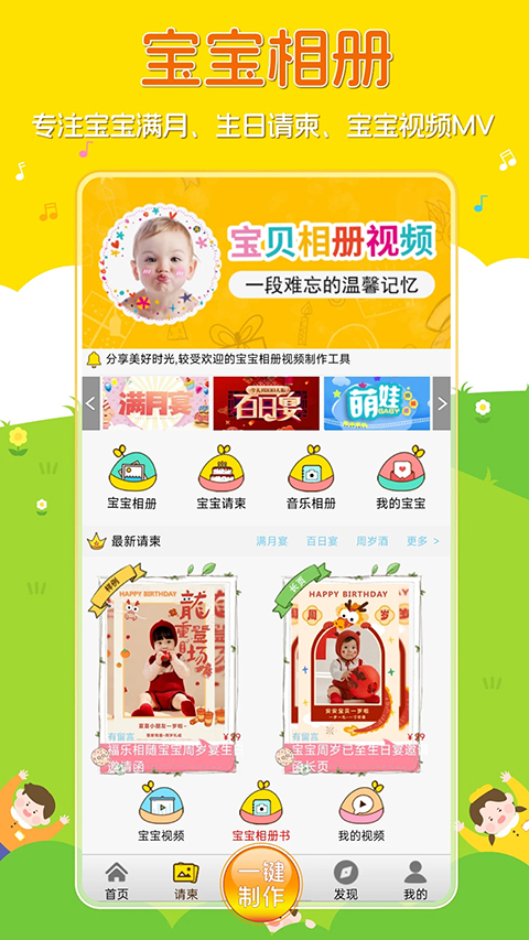 1.增加宝宝生日宴、满月宴、百日宴、周岁酒和宝宝相册模板;