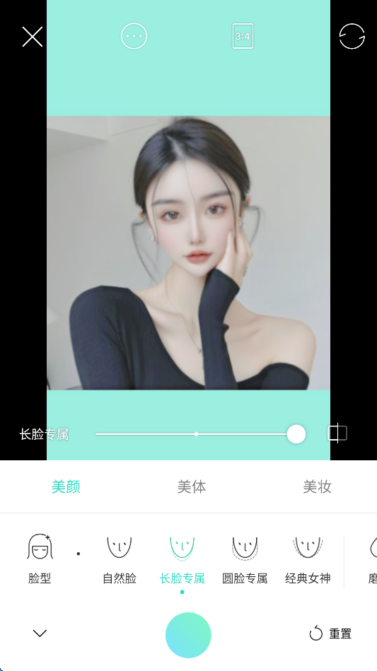 2、默认长脸特效,将再照片下方可以看到到这种脸型调整,可根据需求自行调整。
