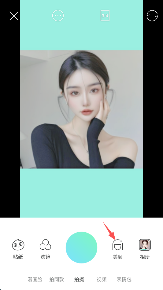 1、点击屏幕下方的“美颜”。