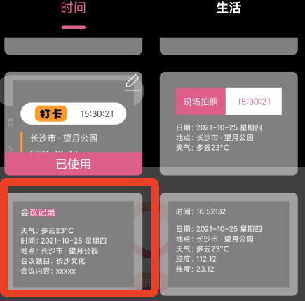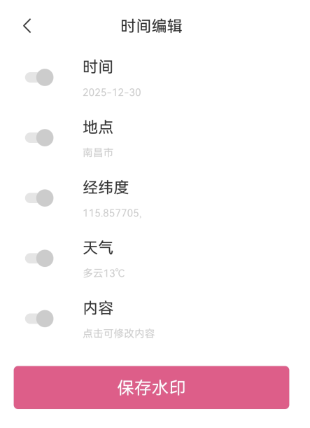 时间地点水印、天气水印、经纬水印、卡通水印、防疫水印、春节水印、打卡水印等多套模板,真实还原多种工作和生活场景,满足不同相机用户对水印样式的需求。