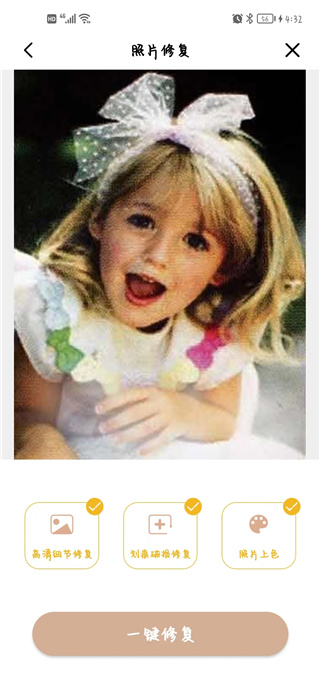 一键修复还原残旧破损的老照片。