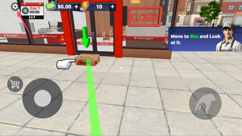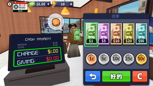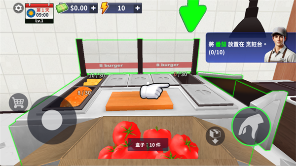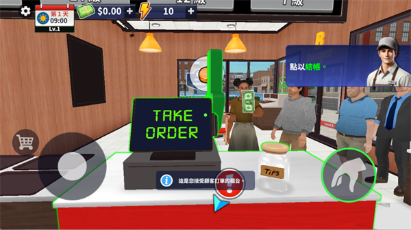 准备好一定量的经营物资后,到汉堡店的招牌处,将牌子切换开启营业。