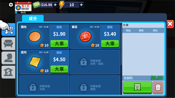 当食材不足时,可点击店内电脑购买物资,补充库存以保证正常经营。
