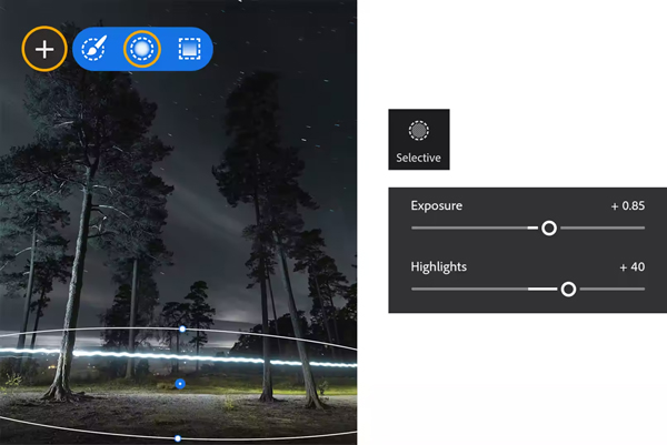 使用选择性编辑和径向渐变来吸引人们对独特效果的注意。使用曝光和高光突出细节并使其发光。