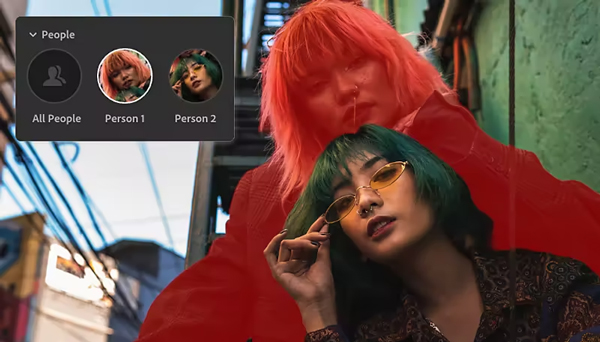 选择人物会立即检测图像中的人物,因此您可以快速编辑面部特征、服装等。