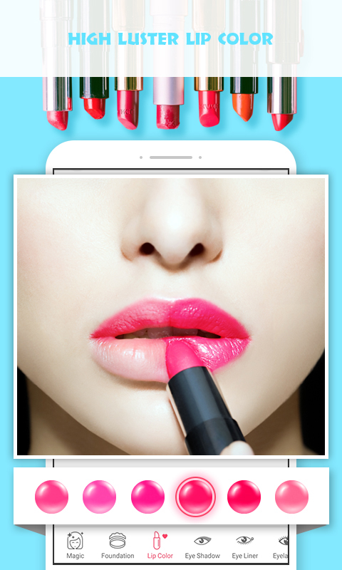 彩妆相机APP是一款能够智能帮助用户上妆的手机应用,英文名为pretty makeup。用户可以在这里轻松的美颜,就算不化妆出门想拍照也能够轻松的完成。想要什么妆,这里都可以一键选择,用户可以选择软件自带的套装,也可以自己一个个上色,不需要出门试装,在这里全都可以自由完成还不用卸妆。是不是非常的不错呢,一款超级自拍美妆应用,颠覆史上化妆新玩法,瞬间自动化妆,让化妆变得不再难。彩妆相机可以轻松塑颜,美白、瘦脸、智能的美颜用户,让用户能够在这里展现更加美丽的自己,而且整个化妆美颜过程自然,想试试的用户可以来这里下载体验一下吧。自拍,美化,动态贴纸,动态视频,想做什么彩妆相机全都有。