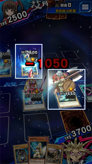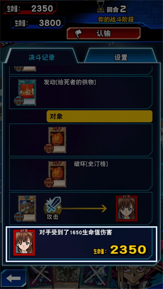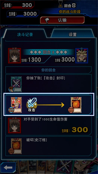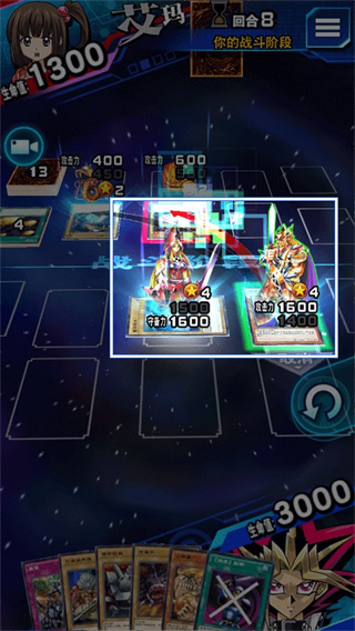 使用怪兽对对手发动攻击,可以给对方的生命值造成伤害。拖动卡片选择目标,即可进行攻击。