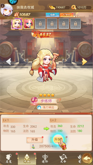 集中培养核心武将,升级和进阶可显著提升属性