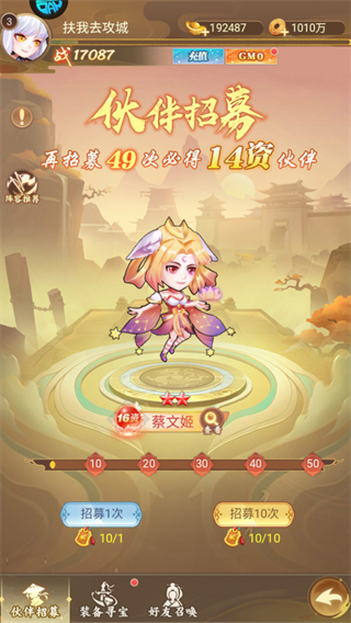 利用招募保底机制(49次必得14资伙伴),获取高潜力武将,增强阵容强度