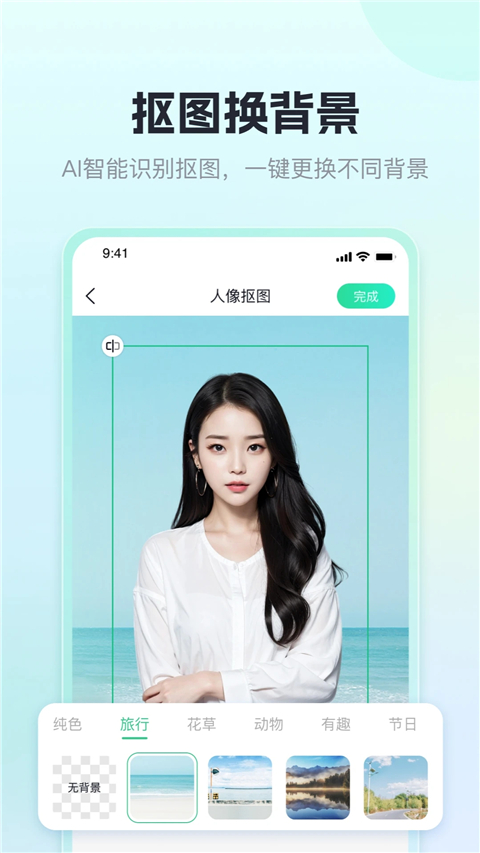2、支持背景替换功能,一键替换图片的背景,轻松实现不同的效果。