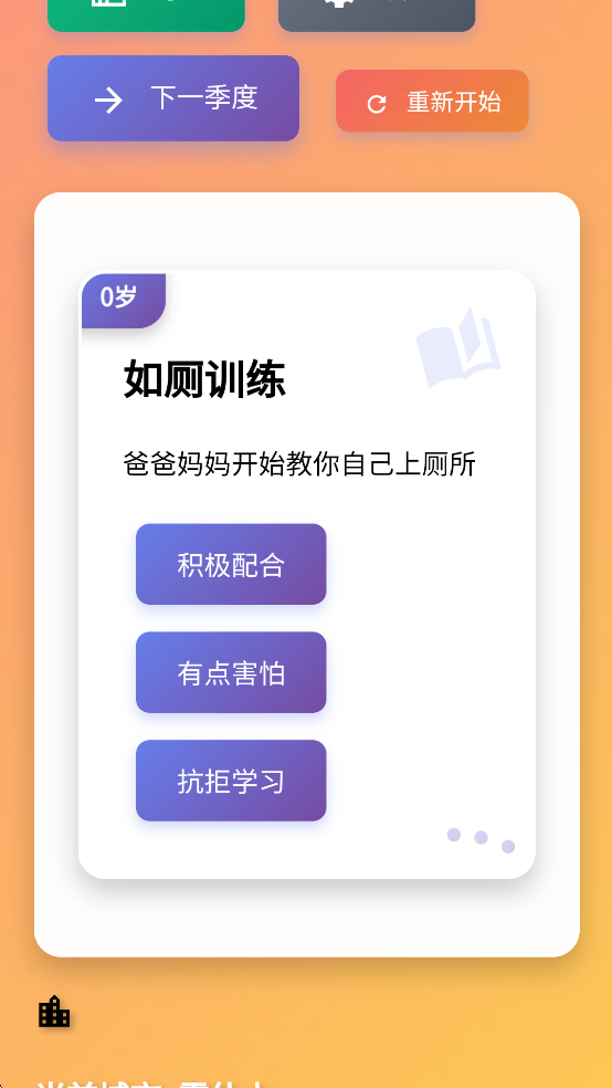人生模拟器是一款文字模拟养成手游,在这里你将开启一段完全由自己塑造的人生旅程。出生前,你可以自由搭配电工、工程师等特色天赋,每一次学习、互动或抉择都将动态影响智力、财富等核心属性。过程中既有疾病、机遇等随机事件考验,也能通过创业、社交等玩法主动规划方向。无论是解锁成就、经营关系,还是探索不同城市,每一个选择都交织成独属于你的人生故事!
