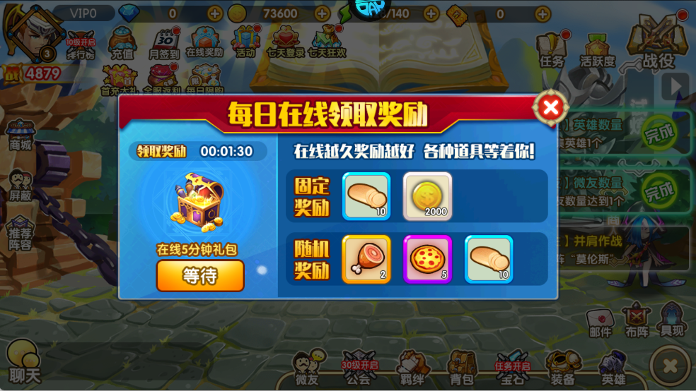 2、每日在线奖励