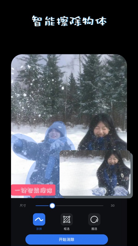 擦除路人/水印/皱纹,仿制图章效果“指划即用”。