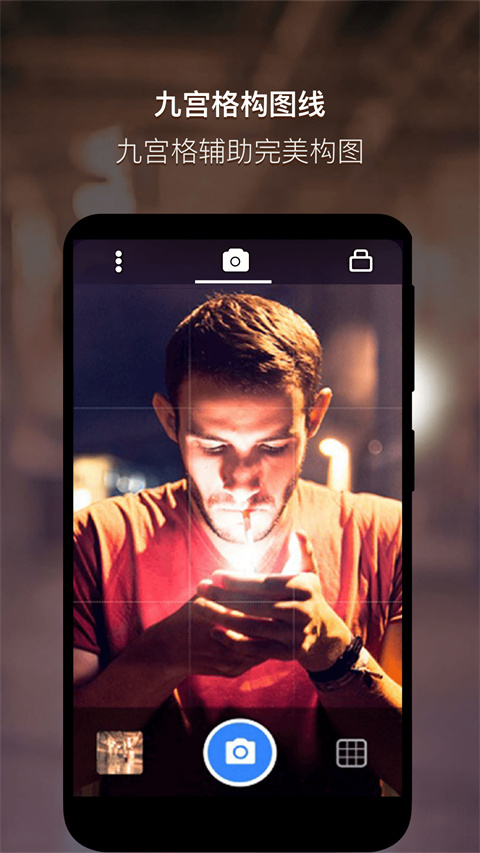 3、九宫格构图线辅助完美构图,成像处理质量高,给您最专业的拍摄。