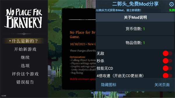 PS:无勇之地手游破解版已内置MOD菜单,玩家可轻松开启无限资源、无伤战斗、技能无冷却及多项属性加成,显著增强游戏体验与操作自由度。