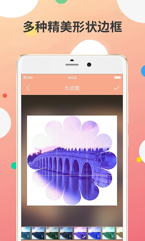 你可以将一张照片切成3x3, 2x2, 1x1, 1x3, 2x3的网格图,并添加上特效、装饰边框或者裁剪成苹果、桃心、动物、花朵等形状;