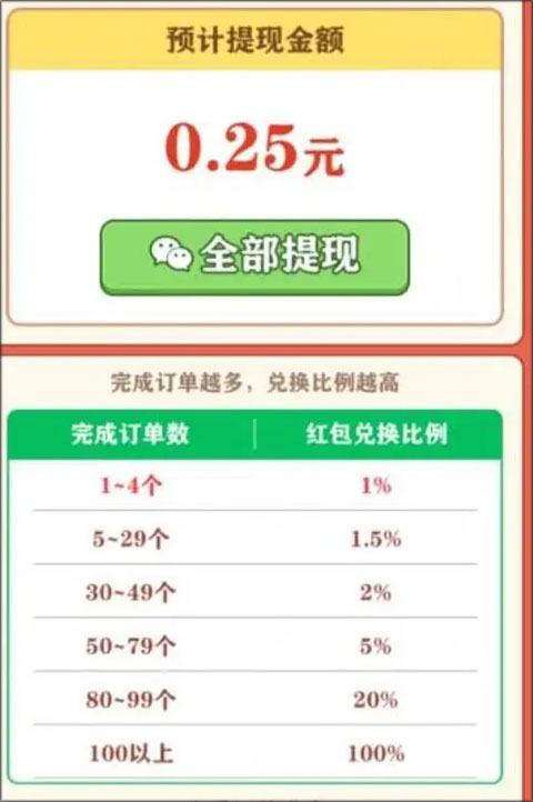 强哥的幸福生活游戏里面所说的赚钱玩法,其实就是完成订单之后,玩家可以获得对应的红包奖励。例如游戏中的第二个订单,玩家可以获得30元的红包。